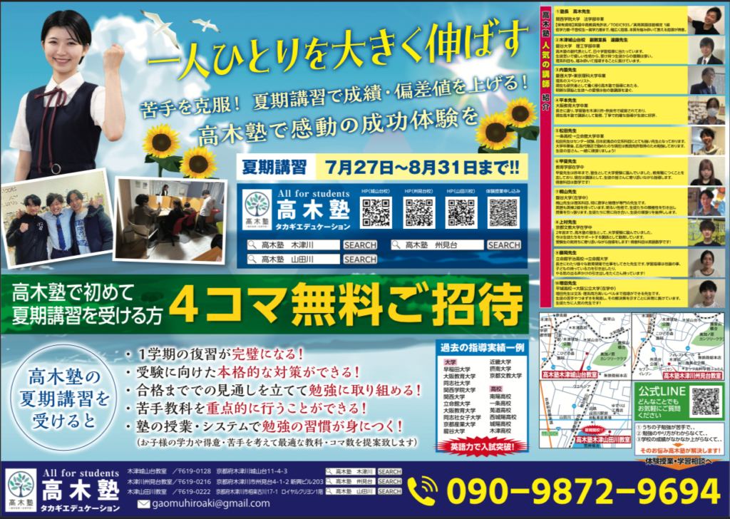 今の学力のワンランクアップを目指したい方はぜひ一度 高木塾の体験授業にお越しください!
